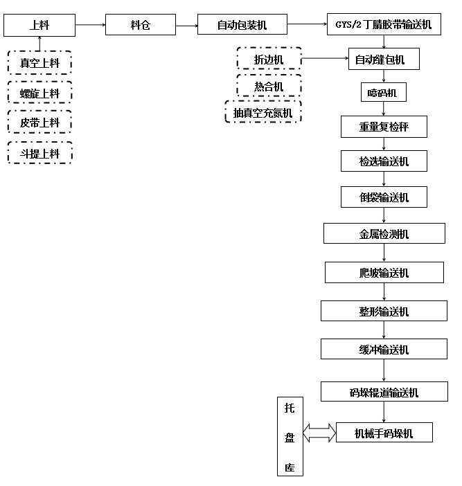 适用范围 尿素、复肥、味精、塑料粒子、聚丙烯、矿砂、食品添加剂等粉状、片状物料的包装生产线